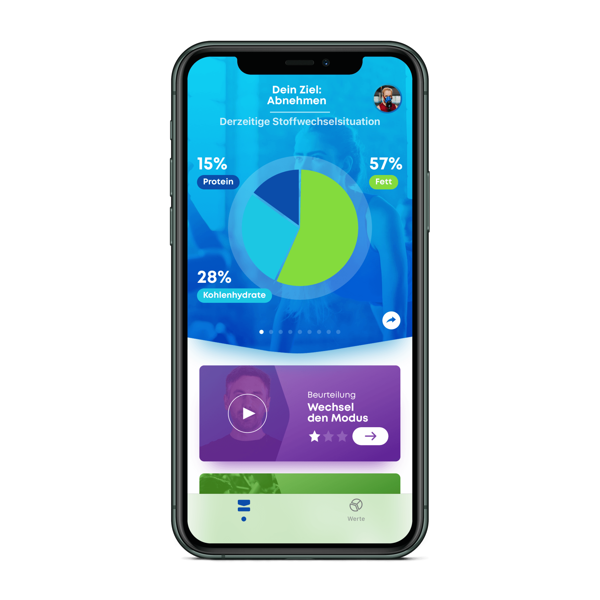 ✓ Exakter Kalorienverbrauch pro Tag inklusive prozentualer Anteil von Kohlenhydraten, Fette und Eiweiße (Protein)